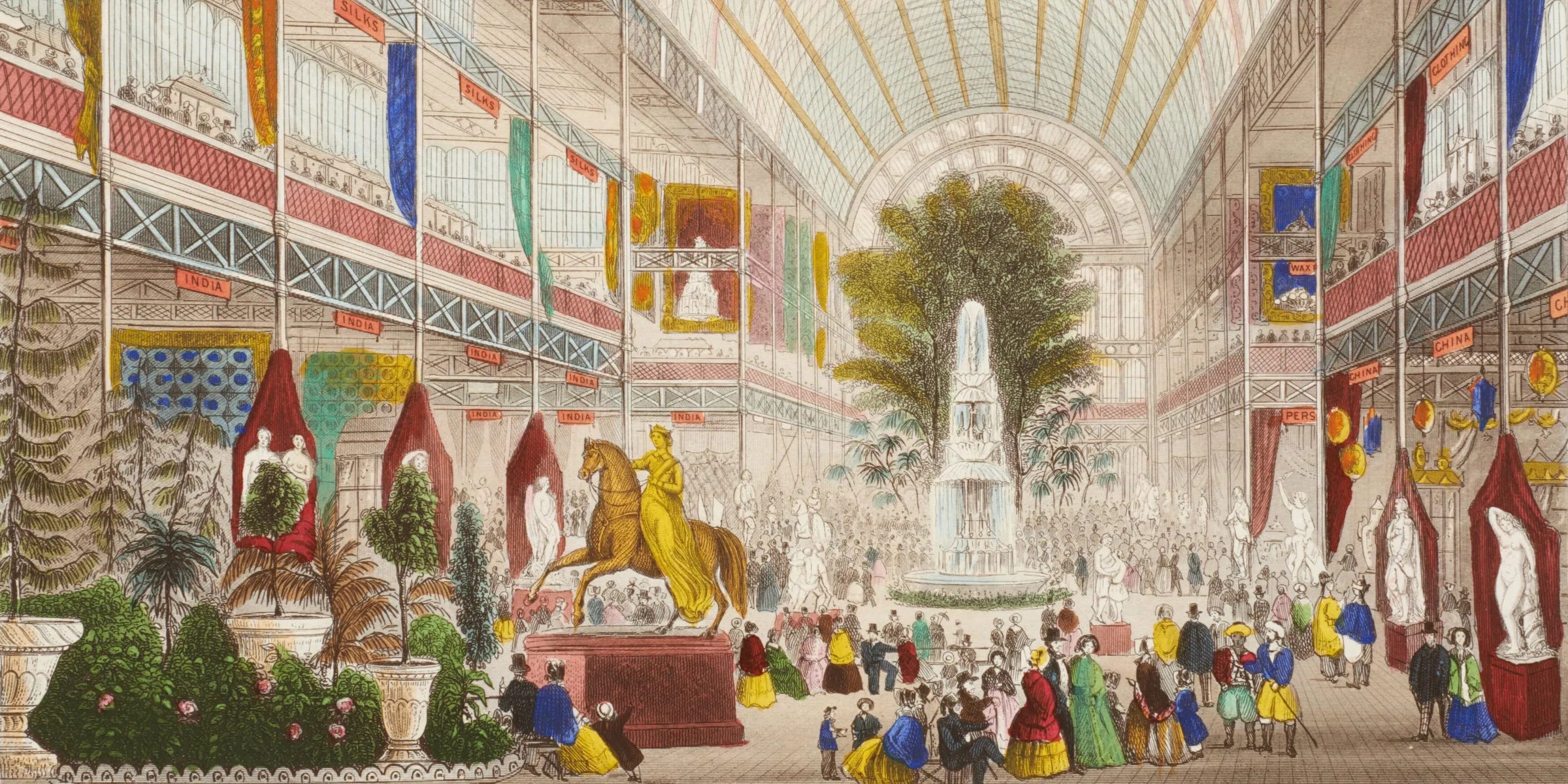 In 1851, six million people walked through the doors of the Crystal Palace in Hyde Park, London. Six million people in a country of twenty-one million. Nearly a third of the population came to stare at what the Industrial Revolution had made possible. Steam engines. Power looms. Hydraulic presses. Mechanical reapers. Over a hundred thousand exhibits from forty-four countries filled a glass and iron cathedral that stretched the length of six football pitches. There were French silks and Sèvres porcelain. Indian textiles displayed on a stuffed elephant. Pianos, telescopes, firearms, furniture. A fountain made from four tons of pink glass. The Koh-i-Noor diamond. An early fax machine. Even the world’s first public flush toilets, which cost a penny to use, and gave us a phrase that can still be heard today. The Great Exhibition was industry’s coronation - and it was magnificent.