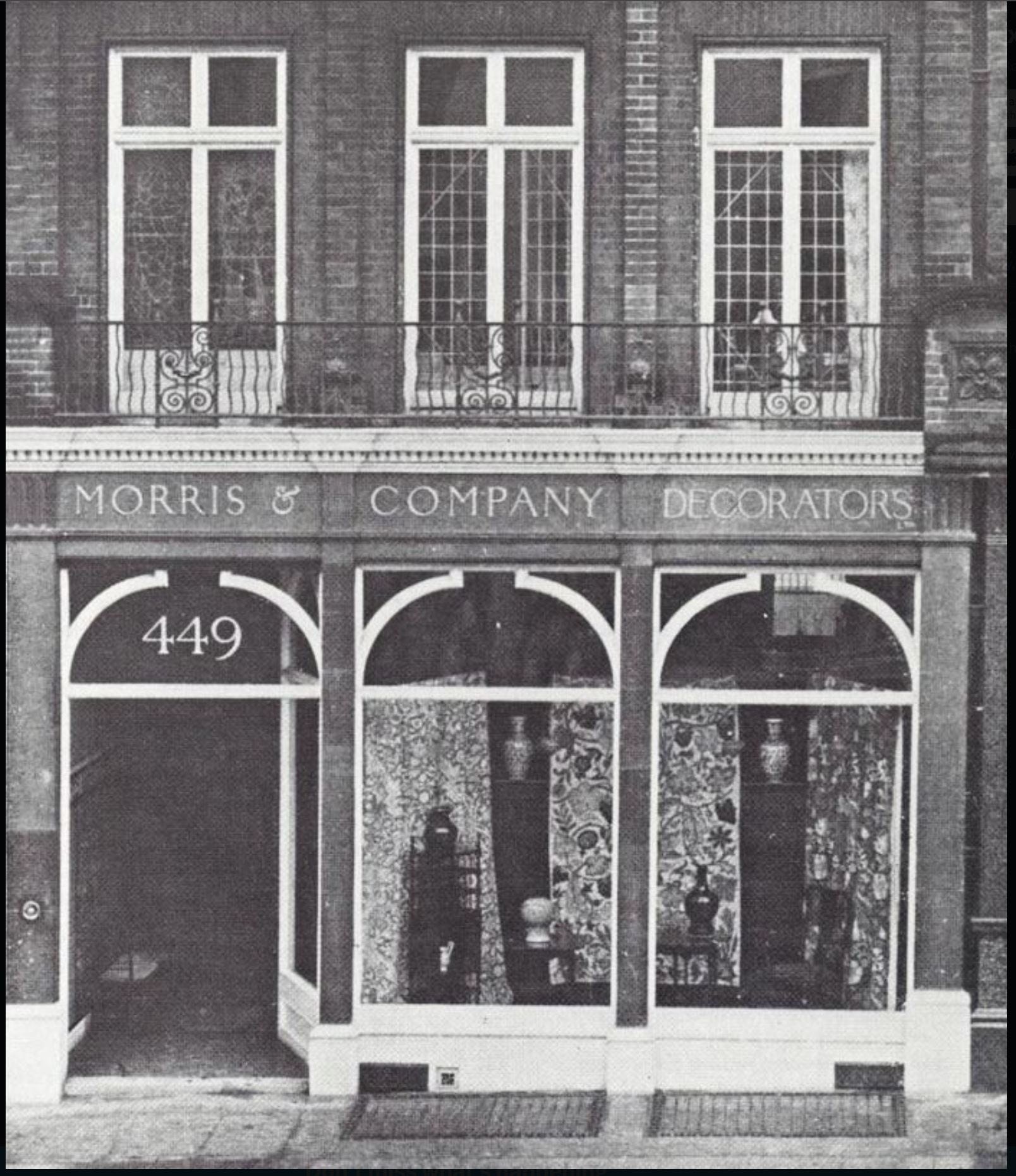 My great-great-grandfather Robert was a stained glass window artist and he undertook work for Morris and Company, but more than that, his sisters lived above the very first Morris & Company shop at 449 Oxford Street. These are my great-great-aunts and they both also worked for Morris and Co as cloth stainers. Both he and William Morris were born in the same year, 1834, and Robert knew William Morris well.